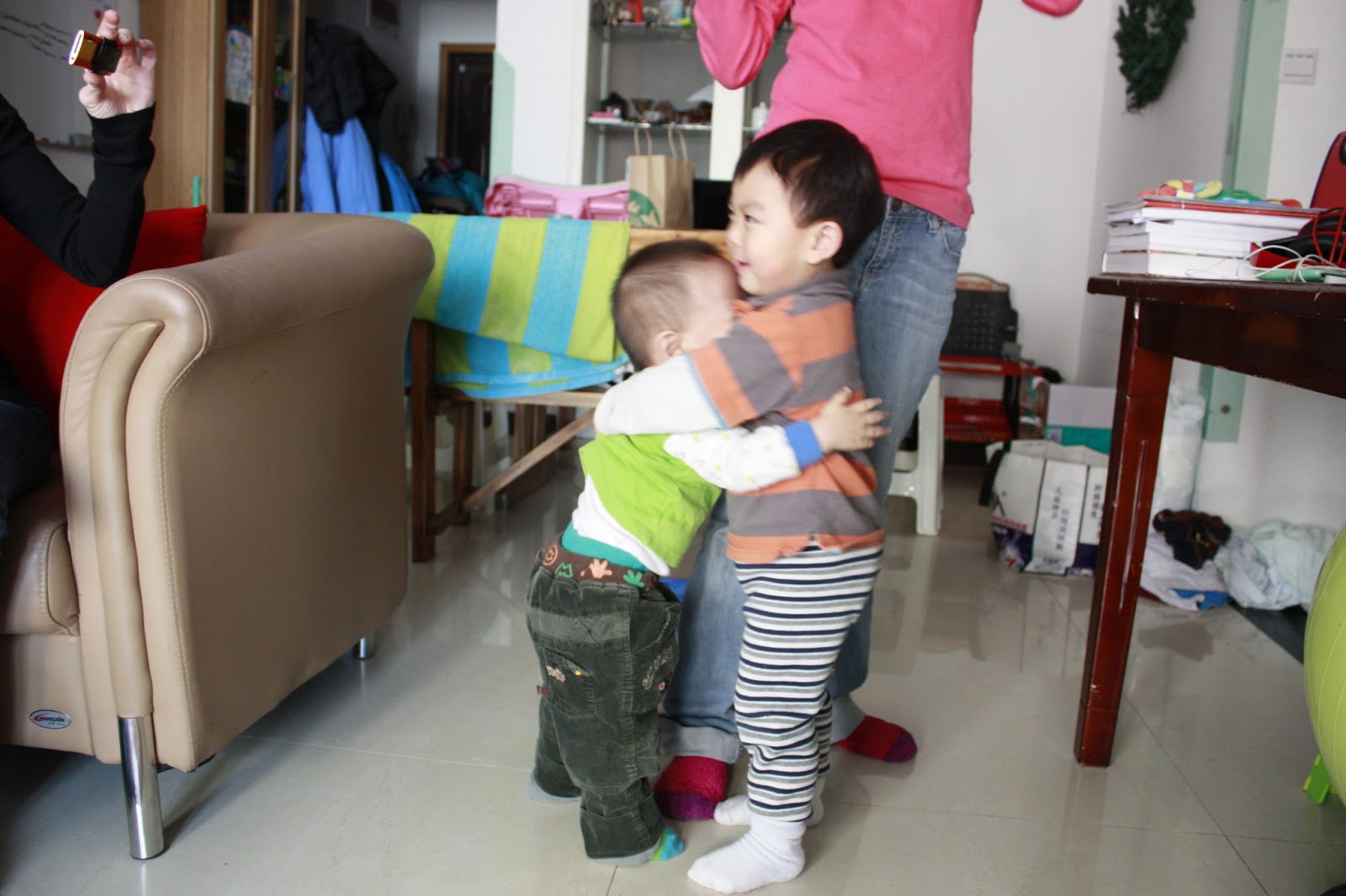 Five days after Chinese New Year, the fireworks are still going, although the amount has been greatly reduced. Matthew is still bothered, but he doesn't freak out like he did in the beginning. He mentions it every time, though. Not one firework, or "boom boom", gets by him, no matter what he's doing. Whether he's laughing, whining, pouting, or sitting about doing nothing at all (ha! we wish that could be the situation every now and again), Matthew perks up at that distinct sound of a cracker and tells the whole world that there's a boom boom outside. For those interested, the total of fireworks today is... one, two, three... Oh, never mind. No one really cares the number, and no one is keeping track of it for anybody. Let's just see there wasn't much. The main firework show today was small and for a wedding outside our apartment gate, not for Chinese New Year. (For this wedding being part of the title, not much is said about it. Sorry.)